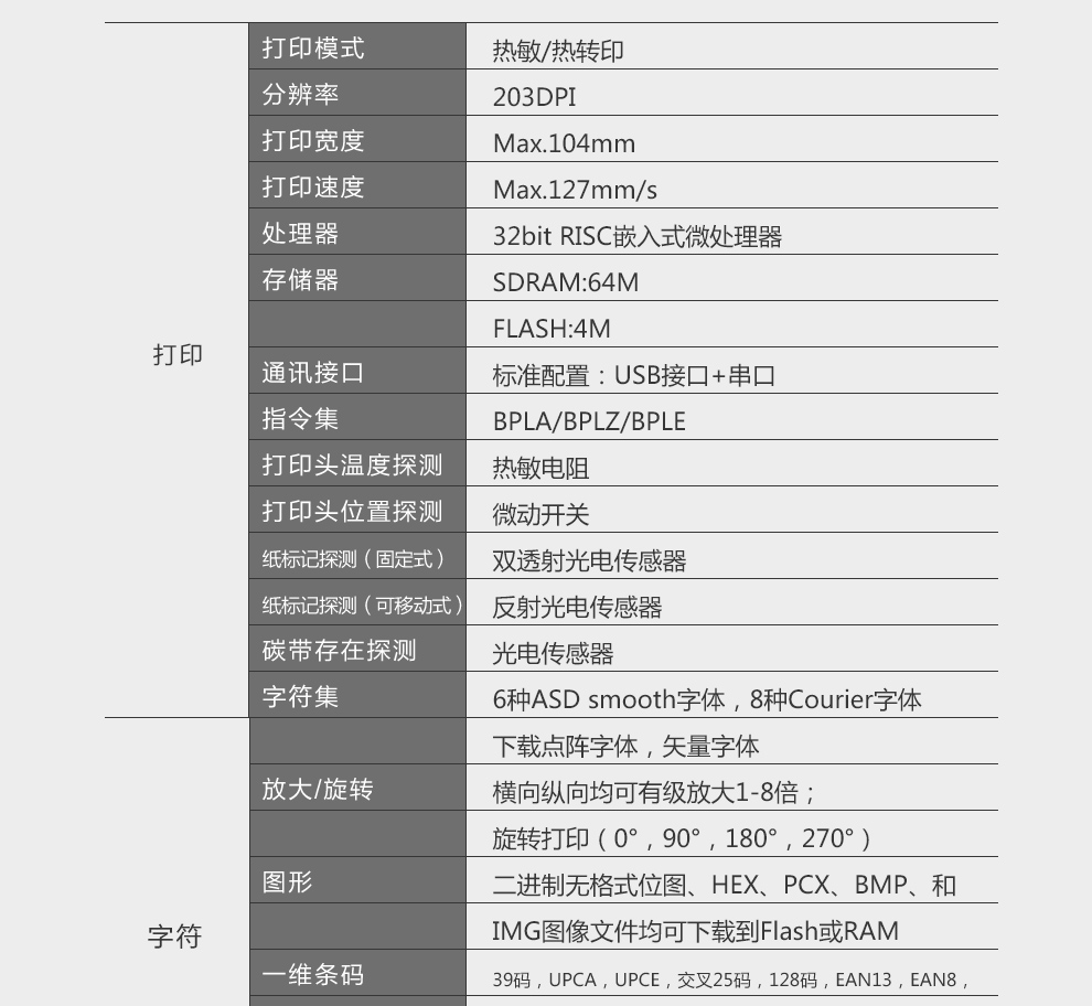 條碼打印機分辨率 | 203dpi |