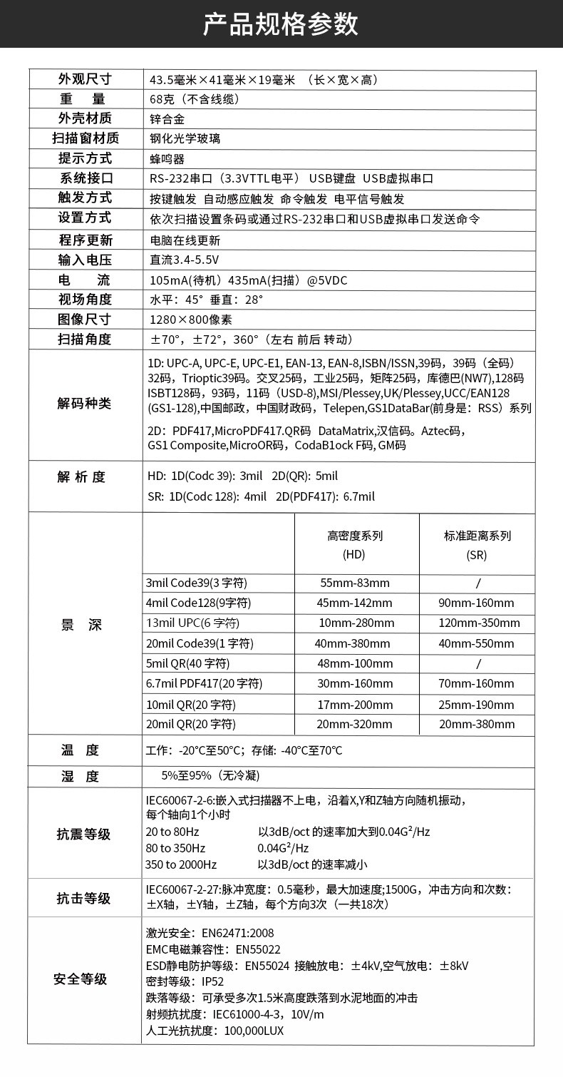 MINDEO民德ES4650嵌入式影像掃描器、二維碼固定式掃描器